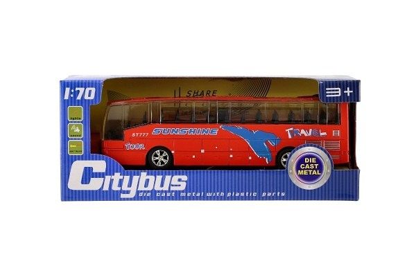 Autobus kov/plast 16cm na baterie se zvukem se světlem na zpětné natažení 4 barvy