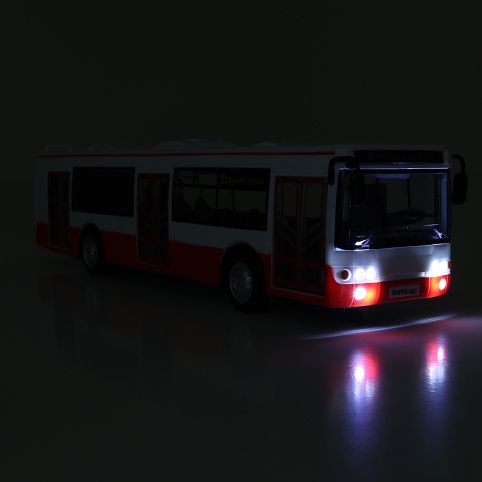 Originální autobus, který oznamuje stanice v českém jazyce, je rozhodně ten pravý dárek pro vaši jízdu! Vaše děti si ho zamilují! Dveře, lze manuálně otevřít a zavírají se pomocí tlačítka umístěného na střeše vozu. Při každém otevření se ozve hlášení, při zavření navíc blikají přední světla autobusu. Autobus v měřítku 1:43 je vyroben z plastu, jeho délka je 28 cm a vyžaduje použití 3 ks baterií LR44/AG13, které jsou jeho součástí. Autobus jezdí na zpětný chod. Potisk názvu stanice a číslo se může lišit od vyobrazení. Tahle unikátní hračka nadchne všechny kluky i holky!