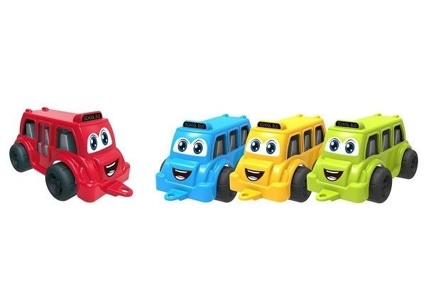 Barevný autobus s obličejem velikosti cca 25 cm, je vyroben z kvalitního a odolného plastu. Výborný dárek pro nejmenší děti. Volný chod.