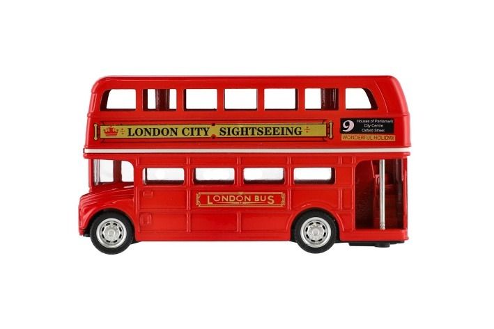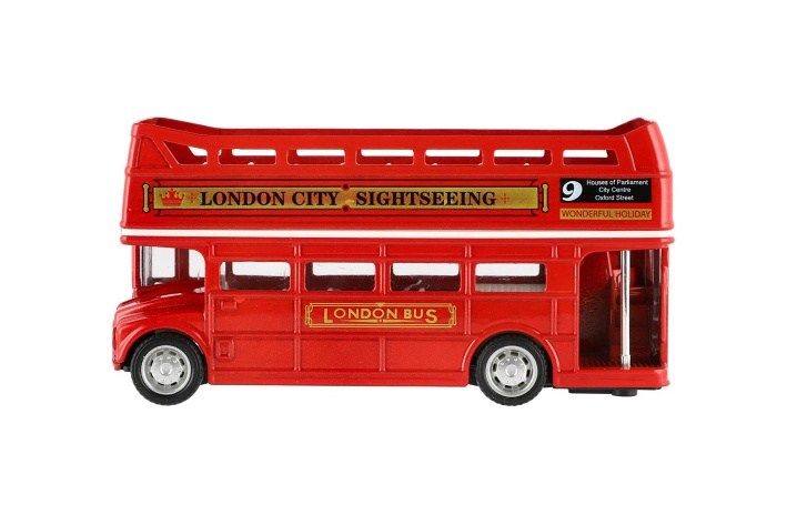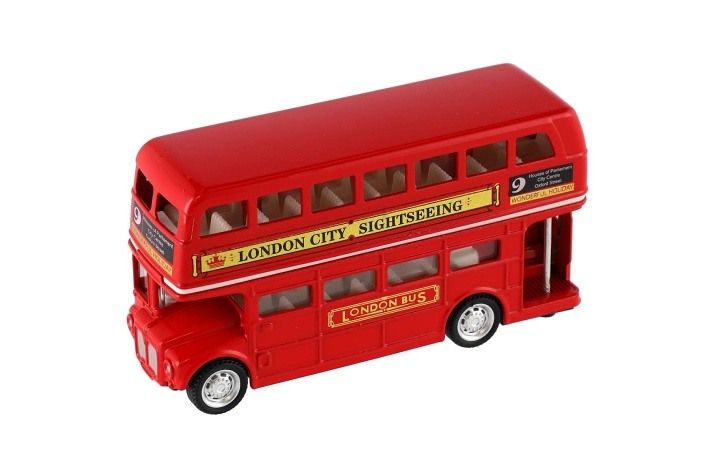 Autobus "Londýn" červený patrový kov/plast 12cm na zpětné natažení v krabičce 17x13,5x6cm