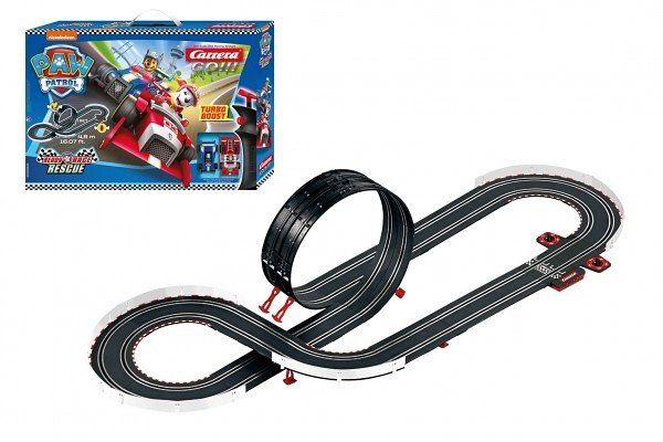 Autodráha Paw Patrol, včetně dvou závodních autíček je zpracována v měřítku 1:43 a je určená pro menší děti. Carrera je značka, která obhajuje svoji kvalitu na trhu několik desítek let. Pro nejmenší děti si můžete vybrat z autodrah vyrobených v originálních licencích. Tato dráha je snadno a rychle sestavitelná, výškově nastavitelné podpěry, přesné a stabilní provedení dráhy, dobře kombinovatelná s novým příslušenstvím, propojení autodráhy s tabletem nebo mobilním telefonem přes díl 61664 PitStop hry. Obsah balení: auto Paw Patrol Chase, auto Paw Patrol Marshall, křížení dráhy, zúžení dráhy, looping, skokánek, zatáčky, napájecí díl 61666, díl s počítadlem kol 88107, 2 ovladače rychlosti s funkcí Turbo 61663 trafo, skokánek, podpěry, mantinely, návod, náhradní kontaktní kartáčky, náhradní vodící lišty.