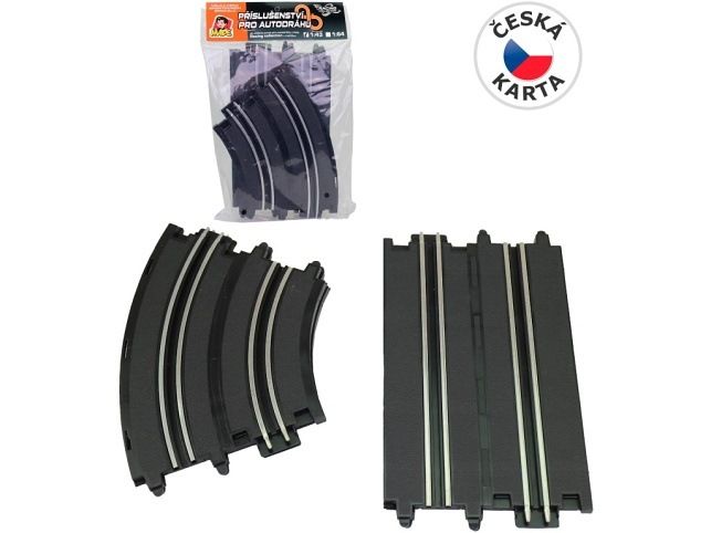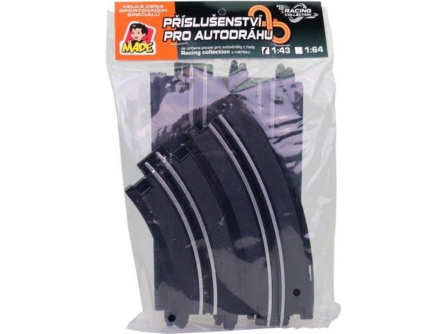 Autodráha náhradní díly 4 ks, 1:43. Náhradní díly jsou určeny pouze pro autodráhu z řady Racing collection v měřítku 1:43. V balení jsou čtyři kusy dráhy. Hračka je určena pro děti 3+. Materiál hračky je plast. Balení hračky je sáček s kartou. Produkt je určený pro kluky.
