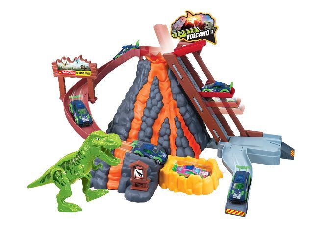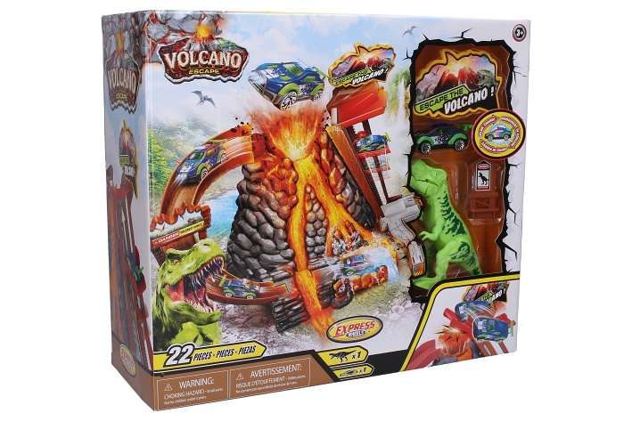 Autodráha sopka s autem měnícím barvu. Obrázkový návod na sestavení v balení. Dráha obsahuje sopku s vysunovací lávou, výtah pro autíčko, sjezd a vodní lázeň pro změnu barvy auta. Teplá voda změní barvu auta, studená mu vrátí barvu původní.