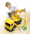 Plně funkční autojeřáb ti nesmí v pokojíčku chybět! Auto o velikosti 70 cm má plně roztažitelné rameno, které po roztažení dosahuje velikosti až 115 cm. Senzace! Součástí jsou 4 boční stabilizační nohy, které po vysunutí zajišťují, aby se jeřáb nepřevážil. Součástí jsou také klíny, pomocí kterých lze zajistit kola proti pohybu dopředu nebo dozadu. Samotné rameno jeřábu lze otáčet o 270°. Vysouvání ramene a jeho zvedání je ovládáno za pomoci koleček. Samotný jeřábový hák je obsluhován navijákem a lankem. Jeřáb je vyroben z kvalitního PVC. Tento praktický kousek lze využít také jako odráželo. Statická nosnost jeřábu je 100 kg, dynamická 50 kg. Vyrobeno v ČR. Paráda!