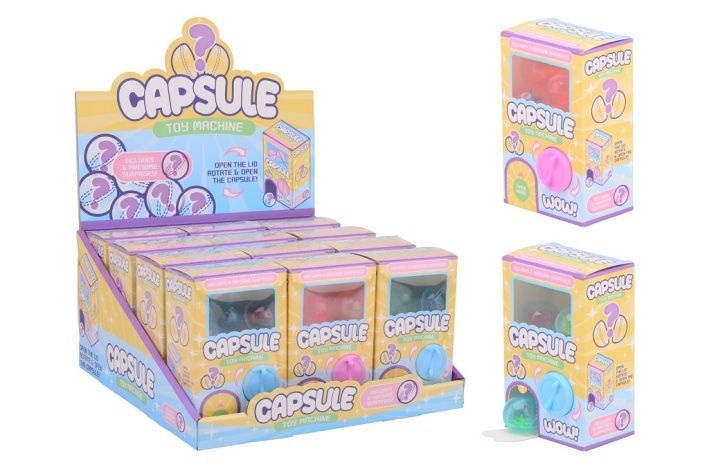 Automat s 6 překvapeními – otevři okénko, zatoč s kolečkem a vypadne ti náhodná kapsule s překvapením. Automat obsahuje 6 kapsulí s různými mini hračkami.