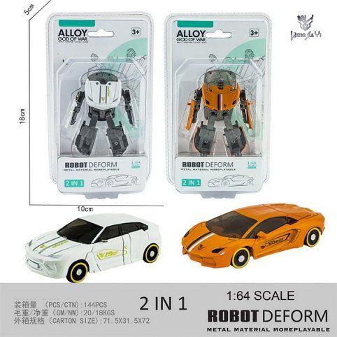 Autorobot kovový. Velikost 11 cm. 2 varianty - bílý, oranžový.