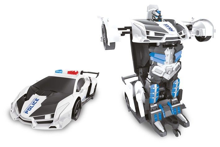 Autorobot RC na dálkové ovládání na ruku. Ovladač v podobě hodinek na ruku. Rozměry 24x10x8 cm. Frekvence 2. 4GHz. Světelné a zvukové efekty. 3xAA baterie do auta nejsou součástí, 3xAG13 do ovladače jsou součástí. Ovladač - tlačítkový kříž - pohyb auta všemi směry, prostřední tlačítko - transformace v robota, levé boční tlačítko - odklopení krytu ovládacích hodinek.