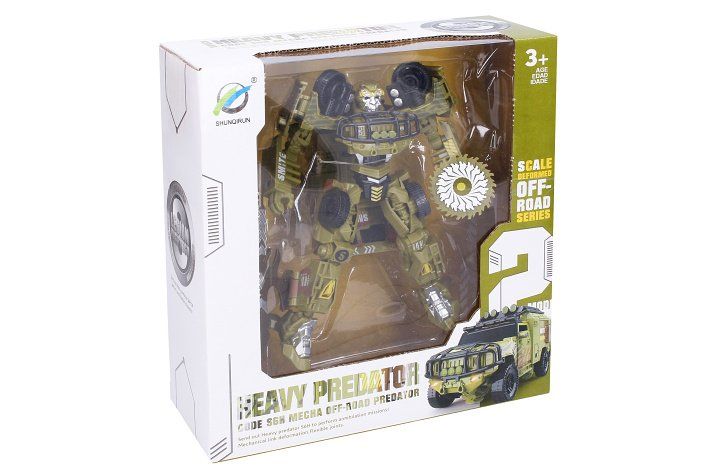 Autorobot. Velikost 17 cm. Transformace na obrněné vozidlo. Balení obsahuje 2 zbraně - meč a pila. Volná kola. 2 varianty - modrá, zelená.