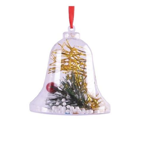 Plastová průhledná vánoční ozdoba k dotvoření ve tvaru zvonečku.