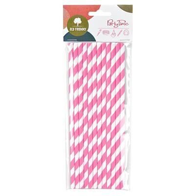 Papírová brčka s růžovými pruhy.