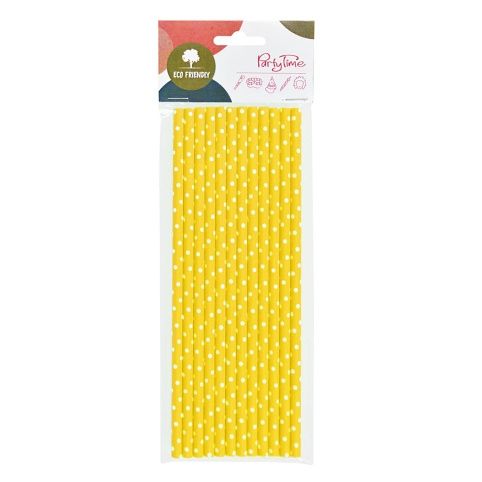 Brčka papírové žluté s puntíky. V balení 12 ks o délce 20 cm a průměru 6 mm.