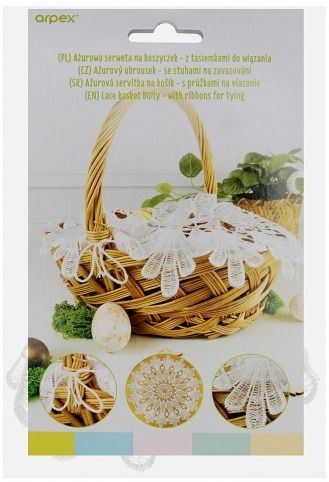 . Dodejte do velikonočního košíku jedinečný akcent díky prolamovanému ubrousku v bílé barvě! Je to elegantní a praktický doplněk, který nejen zkrášlí vánoční výzdobu, ale také zajistí stabilitu díky stužkám na vázání. Jemný vzor a precizní zpracování dělají ubrousek mimořádně efektním.