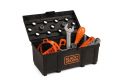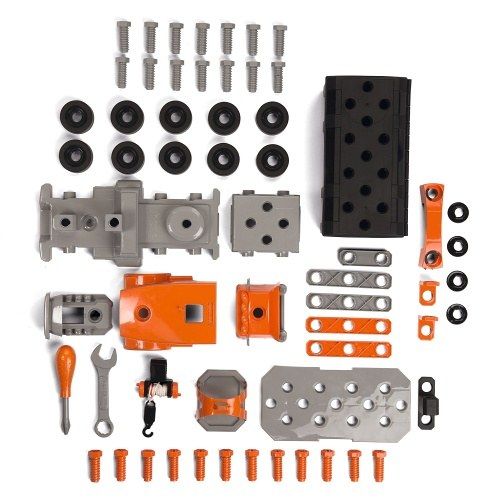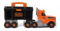 Kamion v licenci Black&Decker s přívěsem, který slouží jako praktický box s držadlem na nářadí. Součástí sada nářadí - šroubovák, klíče, šroubky, matice a další. Spousta stavebních možností, zejména konstrukce jeřábu díky cca.. 60 ks příslušenství. Délka kamionu 43-65 cm.