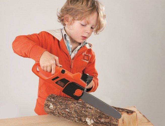 Motorová pila jako opravdová. To pravé pro malé dřevorubce. Zvukové efekty. Rozměry: 40 x 9,5 x 14 cm.