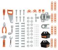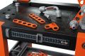 Pracovní dílna Black&Decker obsahuje nářadí, šroubky, matičky, závěsy a přihrádky pro malé automechaniky. Součástí i svěrák. Rozměry: 56 x 103 x 39 cm.