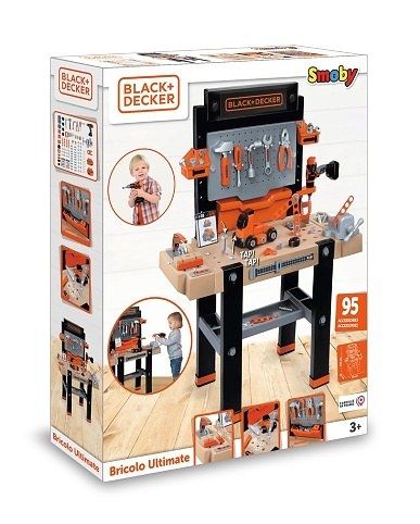 Elektronický pracovní stůl ve struktuře dřeva s přídavnou přihrádkou. Obsahuje 94 dílů příslušenství vč. akumulátorového šroubováku a kotoučové pily a sadou k výrobě vozidla. Baterie 2x LR44.Vhodné od 3 let.
