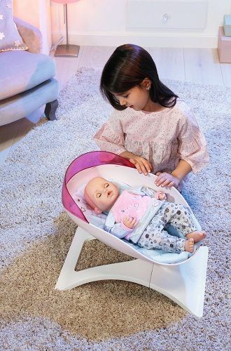 Může to vypadat jako stylové hnízdečko, ale je to houpadlo pro Baby Annabell. Baby Annabell se do něj může uvelebit a když ji v něm pohoupáš, bude se cítit, jako by se vznášela na obláčku. Děťátku jako Baby Annabell to někdy chvíli trvá, než usne – když do houpadla ještě jednou zatlačíš, bude se chvilku houpat samo. Originální doplněk pro panenky Baby Annabell. Pečlivě navržené doplňky rozvíjejí dětskou představivost a otevírají nové možnosti a témata hry. Baby Annabell Houpadlo ""Sladké sny"" s měkkou matrací.