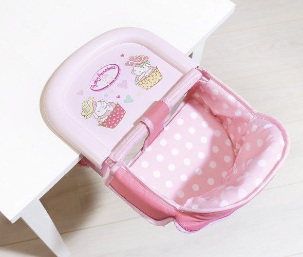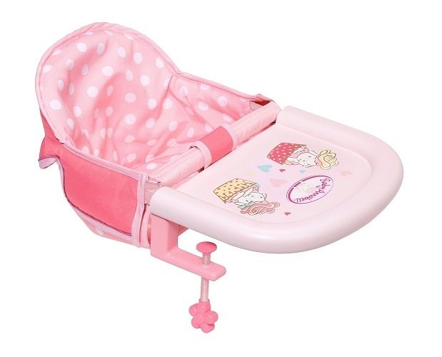 Přímo v centru dění, ne někde stranou. I když má Baby Annabell pořád nejradši pití ze své lahvičky a teprve se pomalu učí jíst, i tak chce sedět s ostatními u stolu. Díky pohodlné židličce s uchycením na stůl se může zúčastnit každého jídla. Jednoduše sedačku zašroubujte ke stolu a „Dobrou chuť!“ Židlička je ozdobena bílými puntíky a obrázky oveček. Je krásně měkká a přitom stabilní. Židličku můžete samozřejmě používat i na hraní. Na integrovaném stolečku je spousta místa na hračky pro Baby Annabell. Originální doplněk pro panenky Baby Annabell. Pečlivě navržené doplňky rozvíjejí dětskou představivost a otevírají nové možnosti a témata hry. Baby Annabell sedačka s uchycením na stůl.