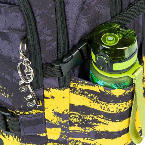 • Boční kapsy z pevné materiálu, které jsou vhodné pro jednu z našich lahví na pití.
