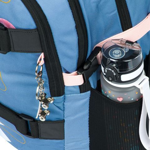 Batoh má jako bonus kovový přívěšek ve tvaru skatu.
