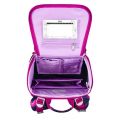 Uvnitř aktovky je průhledná kapsa na rozvrh a vnitřní organizér umožňující rovnoměrné rozložení hmotnosti, doplněný gumičkou pro fixaci.