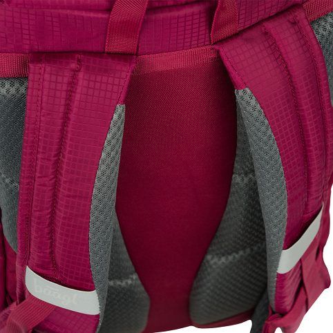 Víko na dvě přezky, polstrovaná panelová záda s odvětráváním a podpůrné pásy zajišťují pohodlné nošení a odlehčení nákladu.