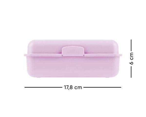 • Plastový box na svačinu. • Box má uzavírání na jeden zámek a obsahuje dělicí přepážku.