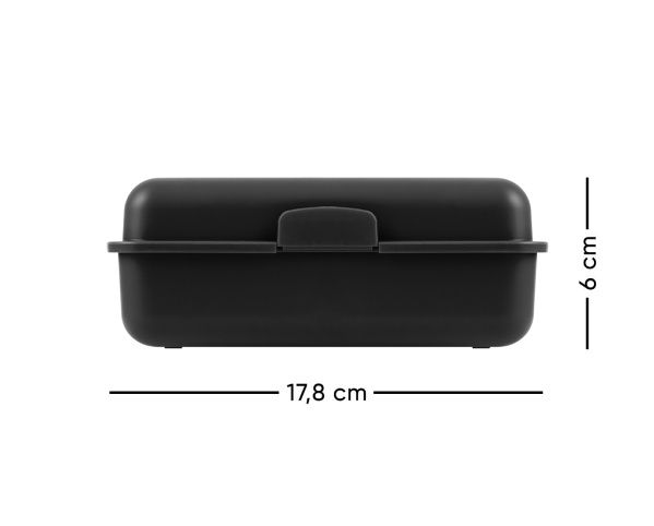 Plastový box na svačinu v černé barvě.