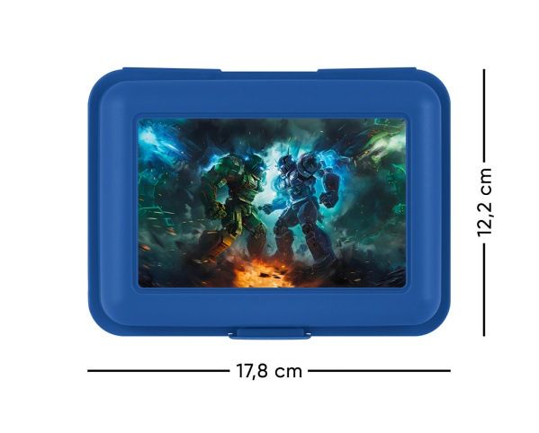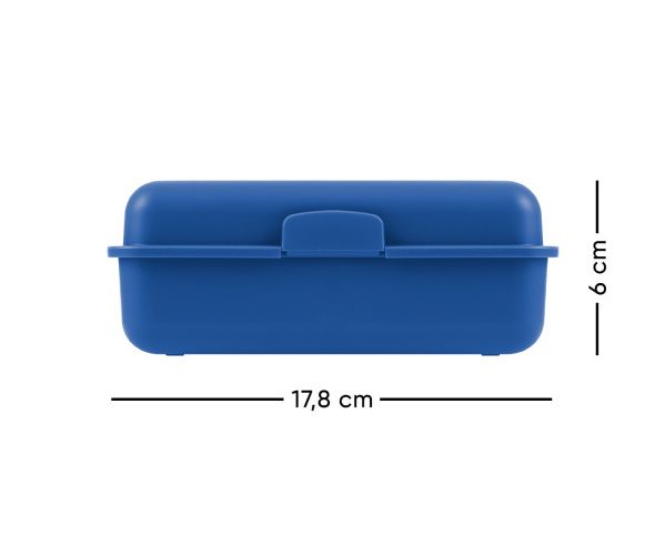 • Plastový box na svačinu v modré barvě. • Box má uzavírání na jeden zámek a dělicí přepážku.• Nedoporučujeme mýt v myčce