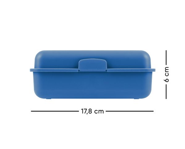 • Plastový box na svačinu v modré barvě. • Box má uzavírání na jeden zámek a dělicí přepážku.• Nedoporučujeme mýt v myčce