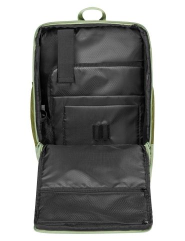 Ideální na cesty jako příruční zavazadlo do letadla. Další výhodou je zádový pruh, který slouží k fixaci batohu na madlech kufru.