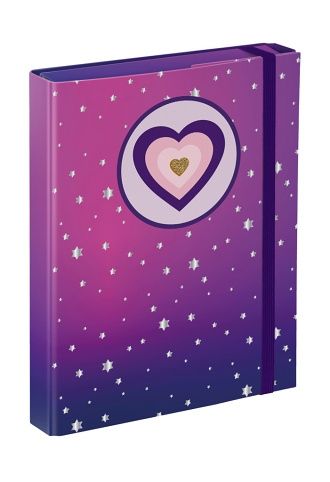 Desky z tvrdého kartonu na úschovu sešitů a učebnic. Lesklý lakovaný povrh zvyšuje odolnost. Vnitřní kapsa a přední klopa zajištěná gumičkou proti vypadnutí. Formát A5.
