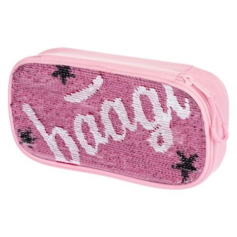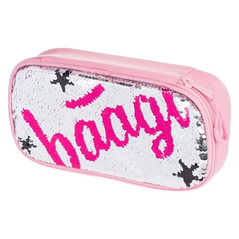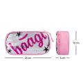 Pevný penál na zip s dvojitou výklopnou chlopní a logem Baagl doplněný o reverzní flitry.