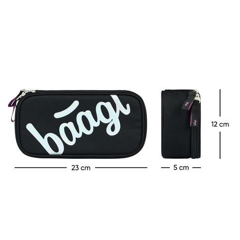 Pevný školní penál s výklopnou vnitřní přepážkou.