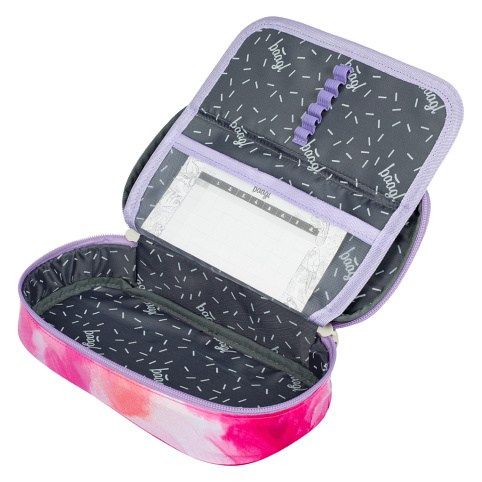 Pevný školní penál s výklopnou vnitřní přepážkou.