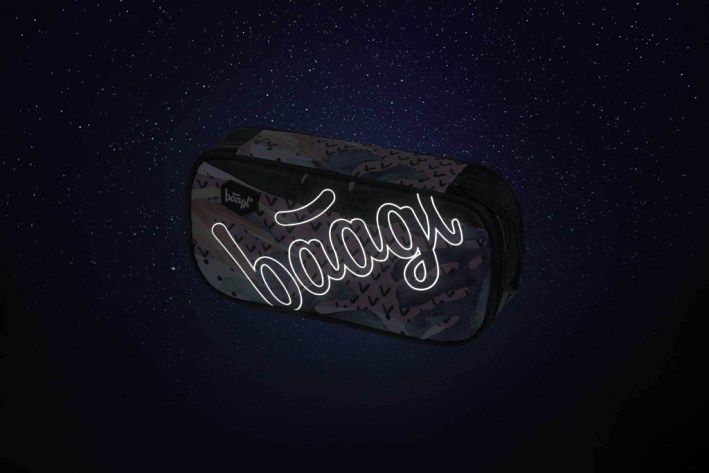 Pevný penál na zip s dvojitou výklopnou chlopní a logem Baagl na přední straně.