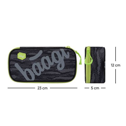 Pevný penál na zip s dvojitou výklopnou chlopní a logem Baagl na přední straně.