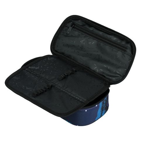 Pevný školní penál s výklopnou vnitřní přepážkou.