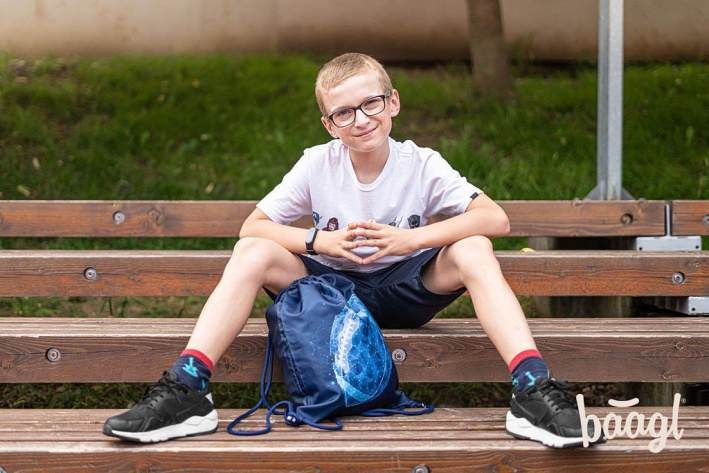 • Sáček na cvičky nebo přezůvky z pevného omyvatelného materiálu. • Zdrhování pomocí pevných tkanic, které zároveň umožňují nošení na zádech.