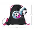 • Sáček na cvičky nebo přezůvky z pevného omyvatelného materiálu. • Zdrhování pomocí pevných tkanic, které zároveň umožňují nošení na zádech.