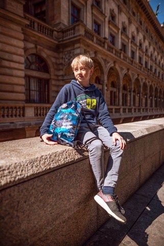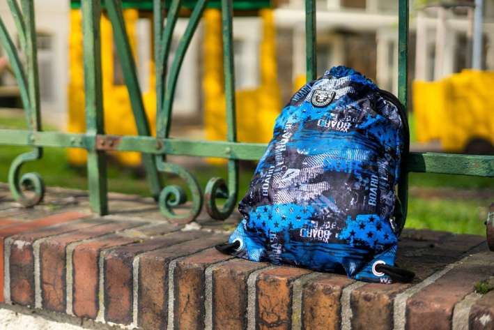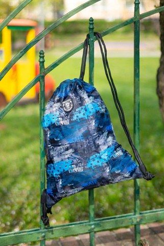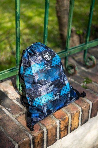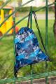 Sáček na cvičky nebo přezůvky, Sáček je vyroben z pevného omyvatelného materiálu. Zdrhování pomocí pevných tkanic, které zároveň umožňují nošení na zádech