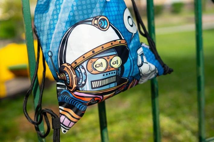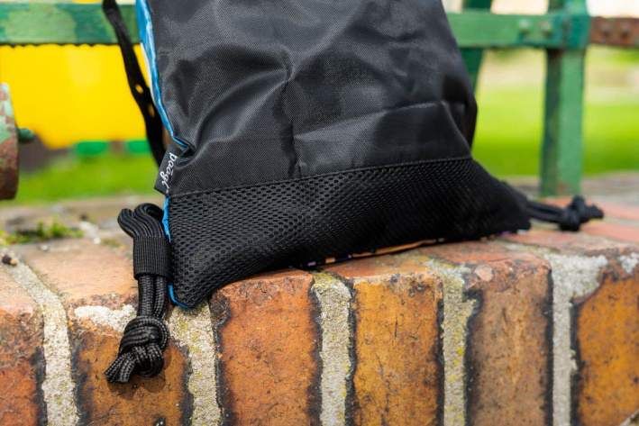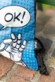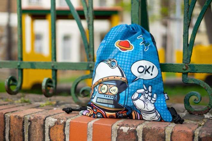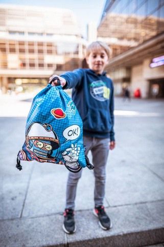 Sáček na cvičky nebo přezůvky. Zdrhování pomocí pevných tkanic, které zároveň umožňují nošení na zádech.
