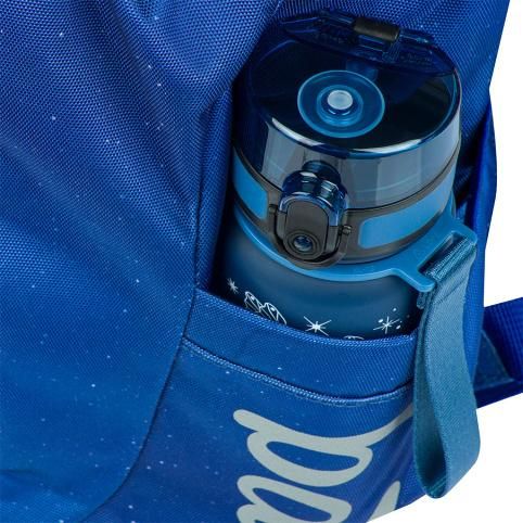 Odolné boční kapsy na láhve zajištěné gumičkou proti vypadnutí.