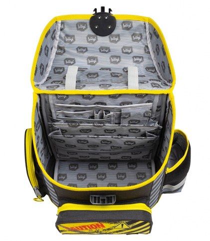 Školní aktovka s vyztuženým tělem, vnitřním organizérem a třemi oddělenými kapsami a zapínáním na kvalitní přezku.