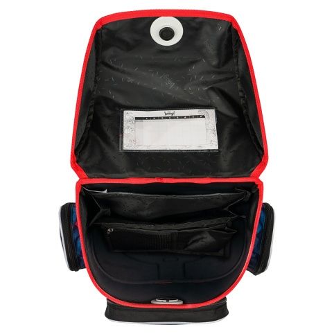 Součástí penálu je také kapsička na drobnosti a okénko na rozvrh hodin.
