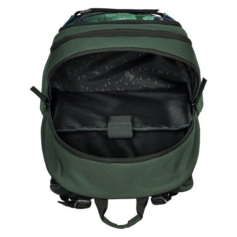 ŠKOLNÍ BATOH SKATE FOREST • Populární model Skate, s hmotností nepřesahující 900 g a popruhy na uchycení skateboardu, je ideální pro žáky již od třetí třídy ZŠ. • Anatomicky tvarovaná záda s výztuží v oblasti beder a plně nastavitelné kompresní popruhy umožňují optimální přizpůsobení postavě. • Batoh Skate je vybaven třemi samostatně uzavíratelnými komorami, vnitřním organizérem a polstrovanou kapsou na 15palcový notebook nebo tablet. • Batoh z recyklovaného, voděodolného materiálu je opatřen řadou reflexních prvků pro maximální bezpečnost dítěte i za snížené viditelnosti. • Batoh Skate disponuje spolehlivými zipy prestižní japonské značky YKK. • Postranní kapsy, ideální například na tritanové láhve BAAGL, jsou vyrobeny z pevného materiálu sladěného s designem batohu. • Ke každému batohu lze pořídit další produkty ve stejném designu, takže jej snadno sladíte s penálem, sáčkem na obuv a dalšími školními pomůckami. • Součástí batohu je také stylový přívěsek. • Batoh Skate splňuje podmínky Institutu pro testování a certifikaci (ITC) ve Zlíně a nezávislé laboratoře QIMA.