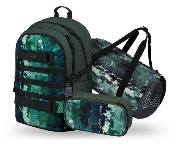 BAAGL SET 3 Skate Forest: batoh, penál, sportovní taška