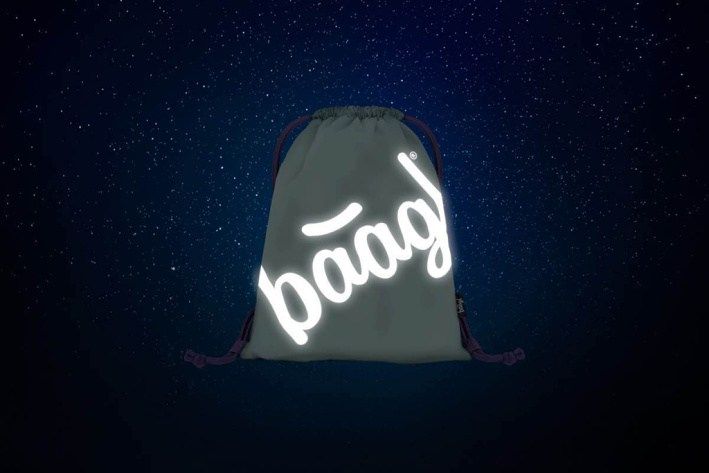 SÁČEK NA OBUV SKATE MINT Sáček na cvičky nebo přezůvky s logem BAAGL, které ve tmě svítí
