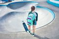 Batoh má jako bonus kovový přívěšek ve tvaru skatu.