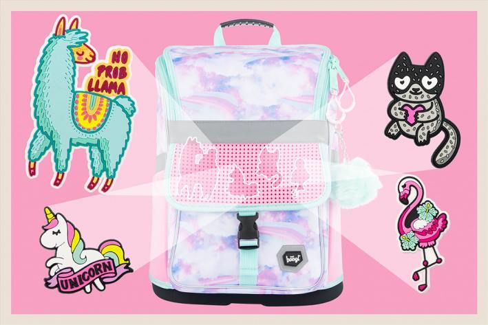 Na klopu přední kapsy můžete libovolně připevňovat odznáčky, které jsou k aktovce jako dárek.